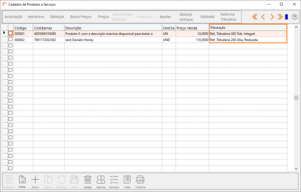 Na ficha do cadastro do produto/serviço, selecione a tributação correspondente no campo “Tributação do produto/serviço”.