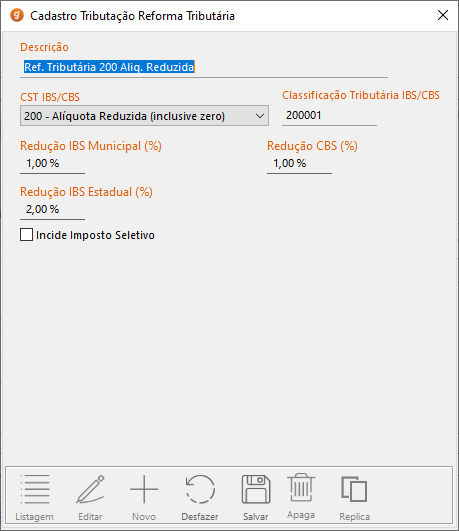 - Classificação tributária IBS/CBS: cadastre o código que identifica a tributação.