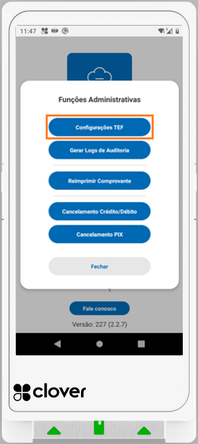 Selecione a opção “Configurações TEF”.