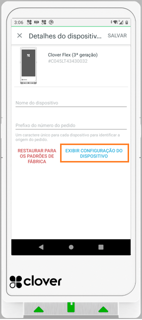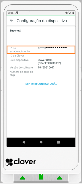 Clique em “Exibir configuração do dispositivo” e anote a informação referente ao “ID do estabelecimento”.