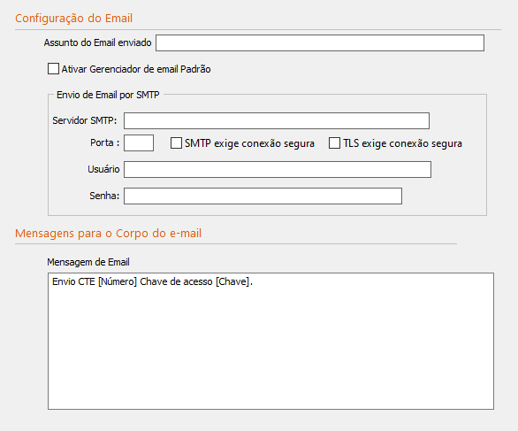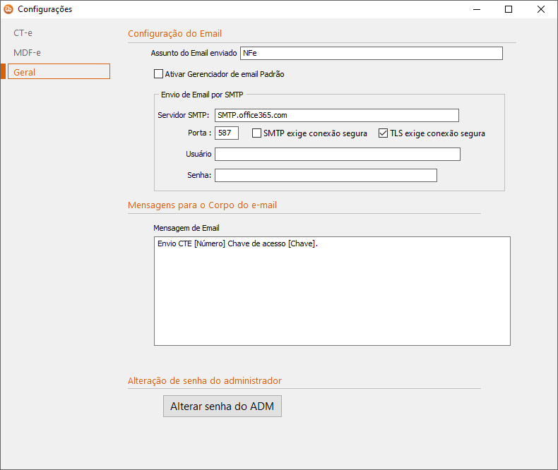 Realize a configuração de SMTP para fazer o envio do MDF-e por e-mail.