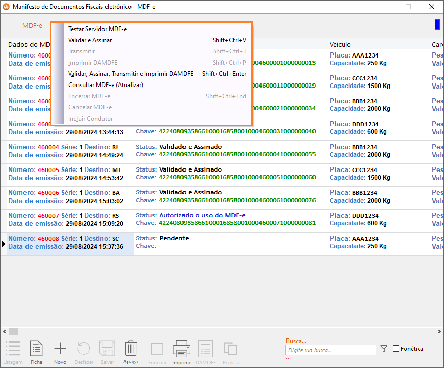 • Validar, assinar, transmitir e imprimir DAMDFE: executa todas as etapas em uma única operação, imprimindo o DAMDFE automaticamente se autorizado.
