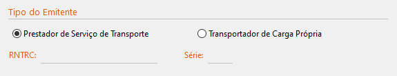• Transportador de carga própria: marque esta opção quando a empresa transporta mercadorias próprias.