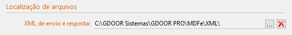 Pasta para armazenamento dos arquivos XML, pré-configurada para a pasta de instalação padrão do sistema GDOOR. Caso necessite mudar o local, clique no ícone “” e indique outra pasta/caminho disponível em seu computador.