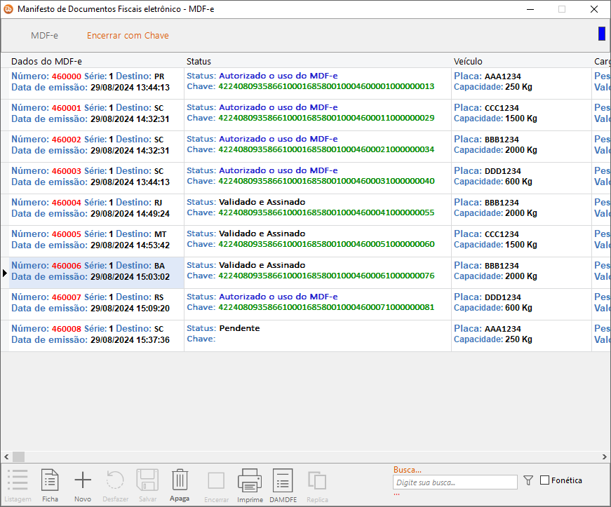 Ao acessar o módulo, a listagem de documentos mostrará todos os MDF-e emitidos.