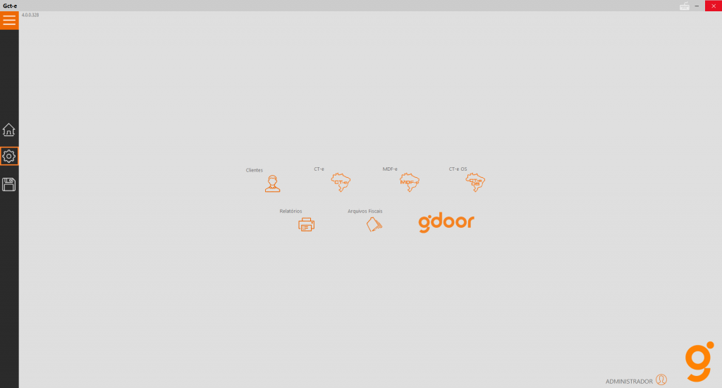 Para acessar as configurações do MDF-e, abra a tela inicial do sistema Gct-e e clique no ícone de “configurações” localizado no menu lateral esquerdo do módulo.