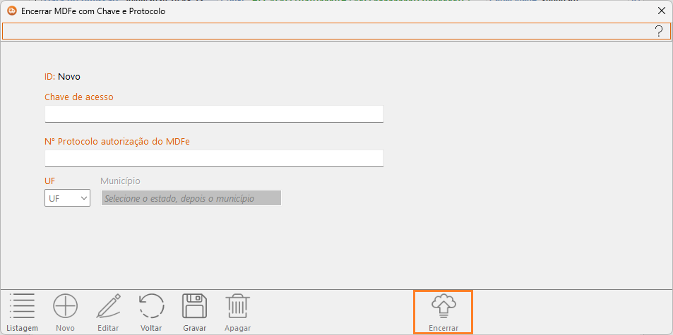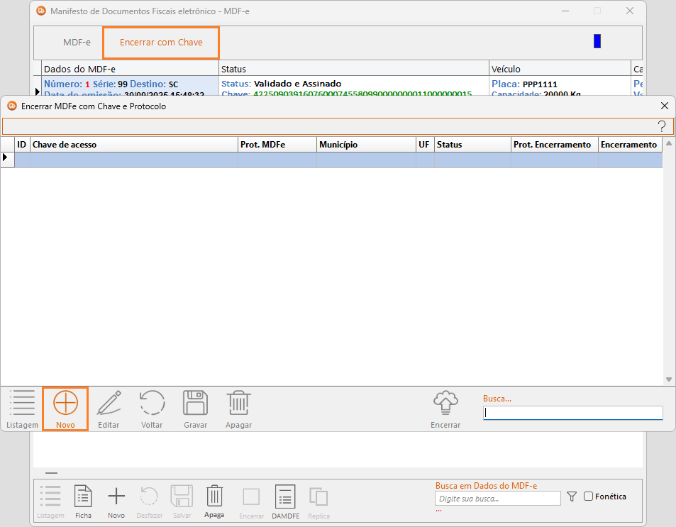Para encerrar um MDF-e, clique no botão “Novo”.