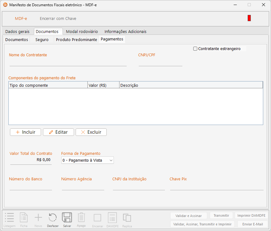• Imprimir DAMDFE: disponível após validar e assinar, porém só tem valor quando o MDF-e estiver autorizado. Pode ser impresso em tela ou em impressora configurada.