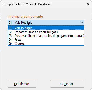 • Componentes do pagamento do Frete: detalhe a composição do valor do frete: