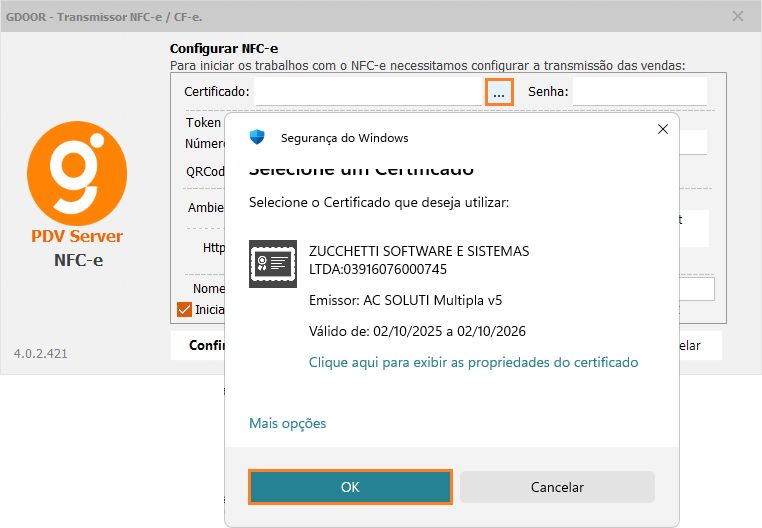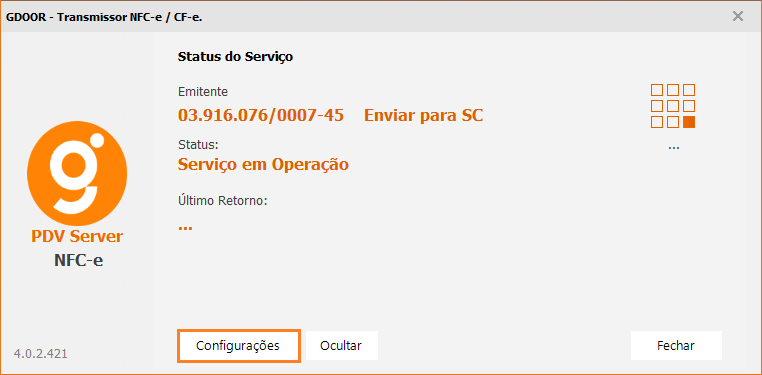 Clique no botão “Confirmar” e, em seguida, clique no botão “Ocultar” para que o PDV_Server permaneça aberto para a transmissão das notas.