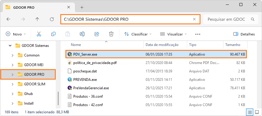 Na pasta do sistema, localizada no endereço C:\GDOOR Sistemas\GDOOR PRO (SLIM/MEI), localize e execute o “PDV_Server”.