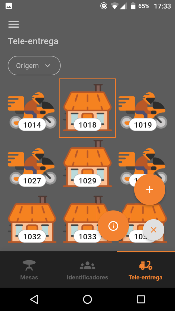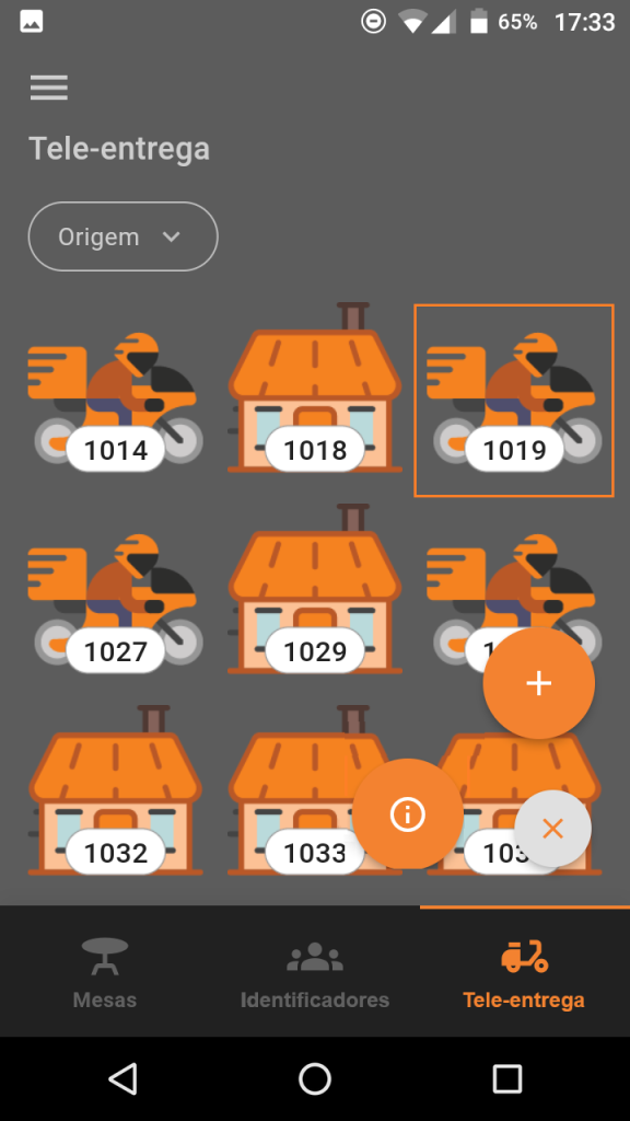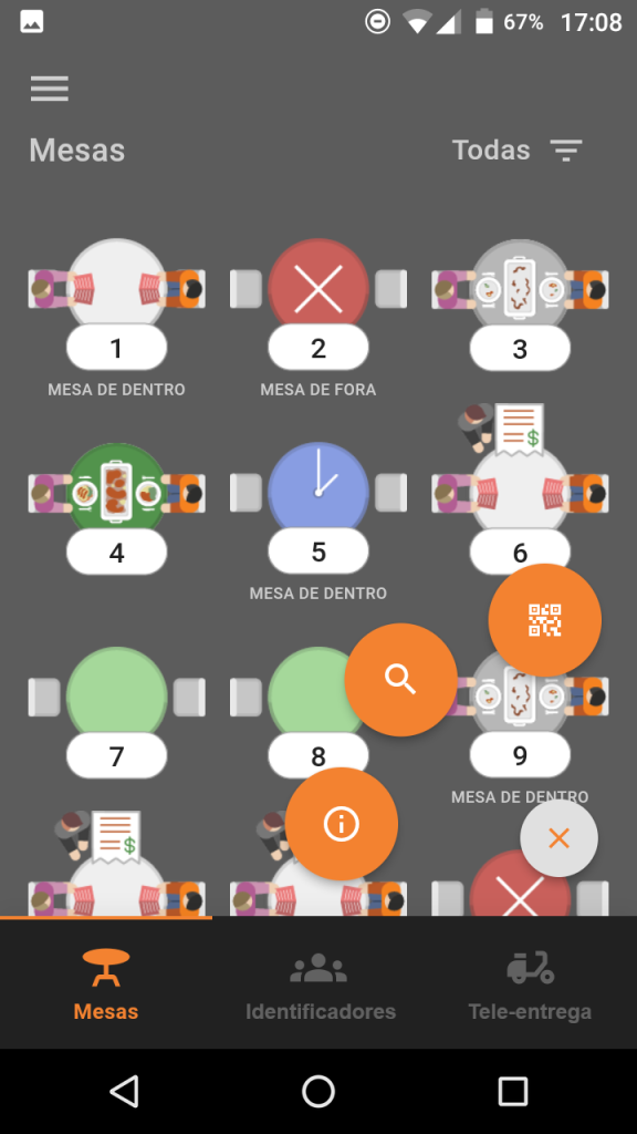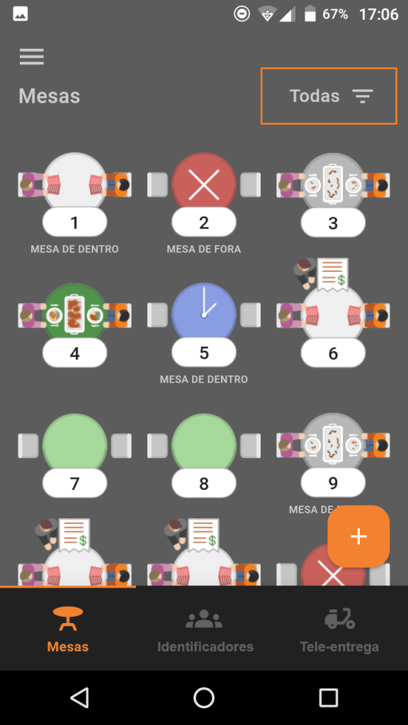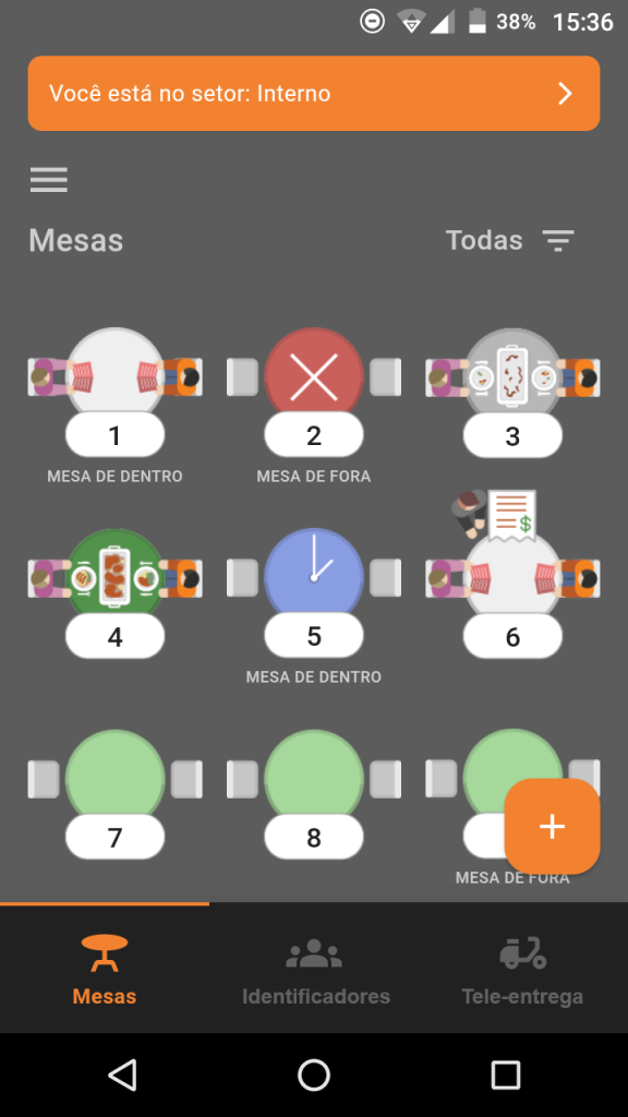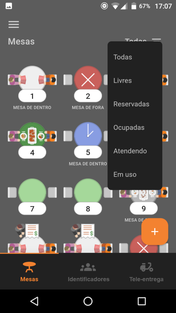 No menu identificadores, as mesas ou comandas estarão agrupadas. Os identificadores são utilizados controlar a distribuição das mesas ou comandas em um mesmo ambiente. Por exemplo.: