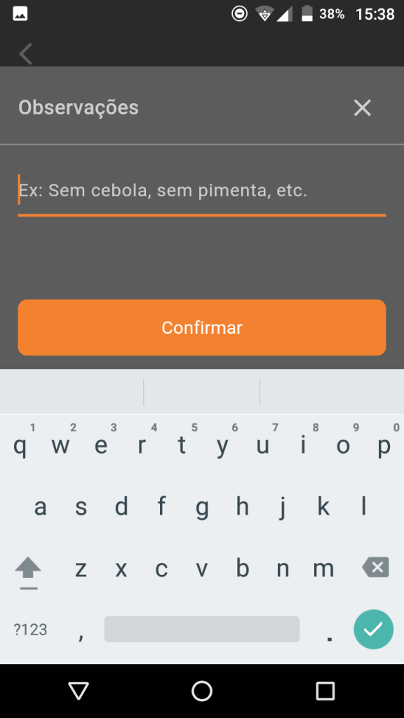 • Observações: utilize a opção disponível no final da listagem para informar uma observação ao pedido. Digite a informação e clique em “salvar”.