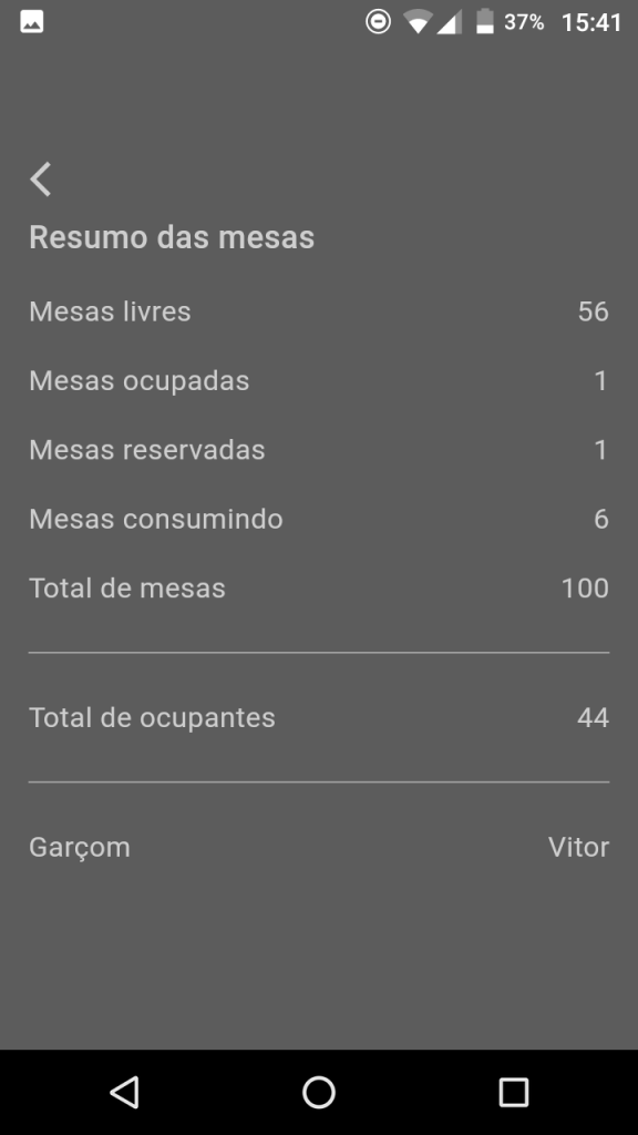 Observe na tela do aplicativo as mesas reservadas com o desenho de um relógio na cor azul.