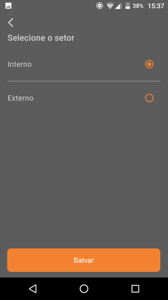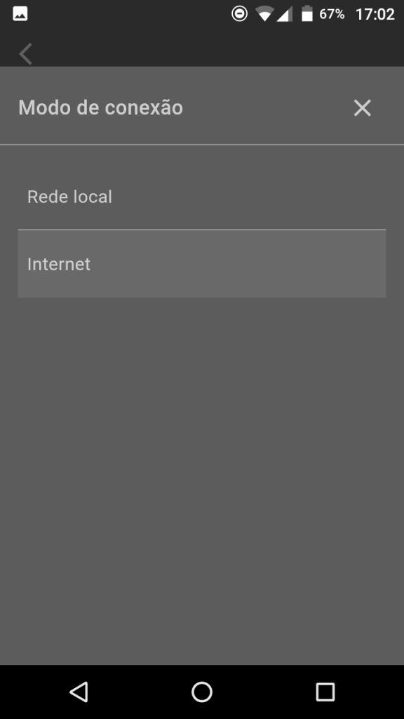 Selecione o tipo de conexão existente entre o app e o sistema Gdoor.
