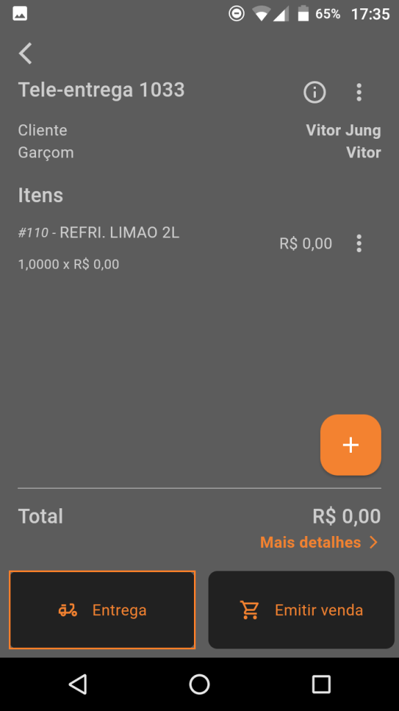 Após salvar, veja que o valor da entrega foi preenchido automaticamente conforme o cadastro de taxa de entrega.