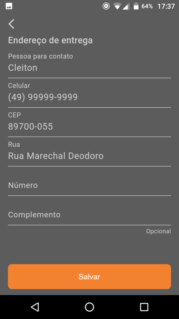 Caso optar pela entrega, ao clicar em “preencher” será necessário fazer o cadastro completo do cliente.