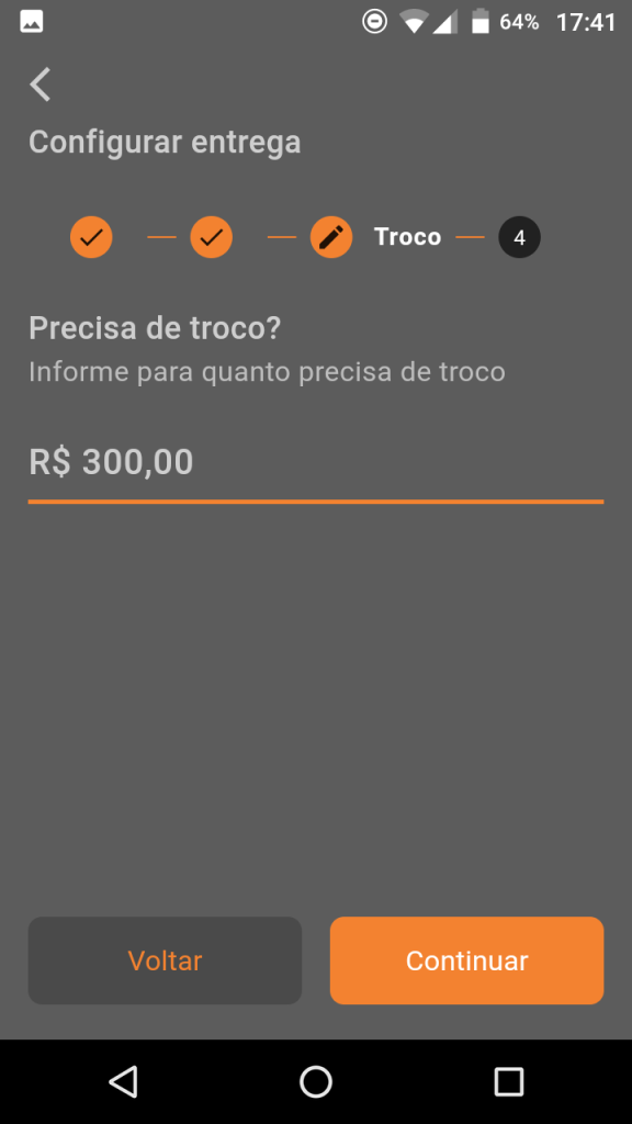Para facilitar o acerto da venda, clique no botão “configurar troco” e estipule os valores que o entregador deverá levar junto na hora da entrega.