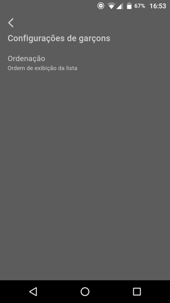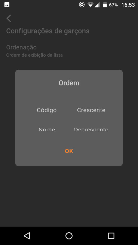 No canto direito superior da tela, poderá selecionar qual a ordem que deve apresentar o cadastro de garçons na tela: