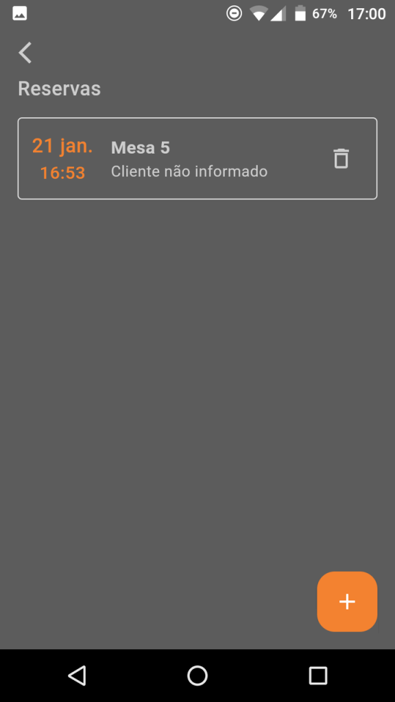 Caso o estabelecimento trabalhar com a reserva de mesas, neste local estarão listadas todas as reservas já feitas. Clique em “adicionar” para adicionar uma nova reserva.