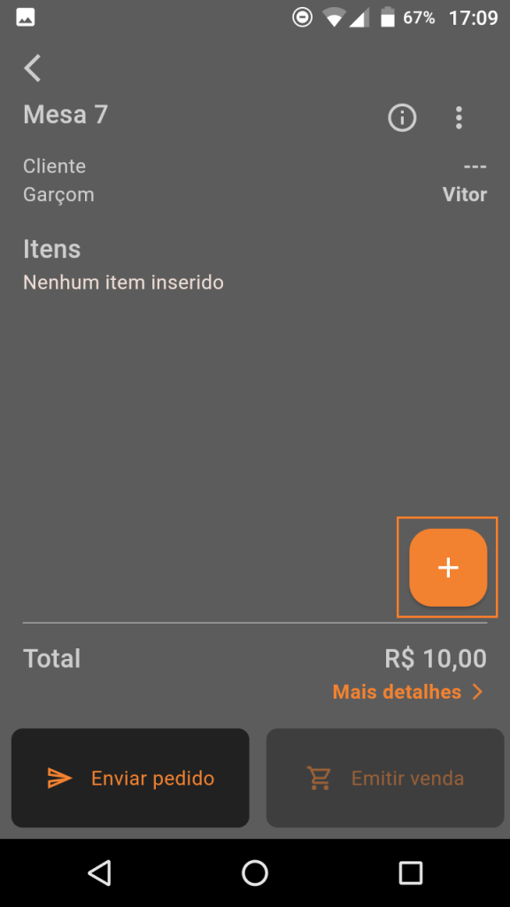 • Selecionar garçom: permite selecionar o garçom quando a opção “vendedor fixo” não foi marcada na configuração do Ghub;