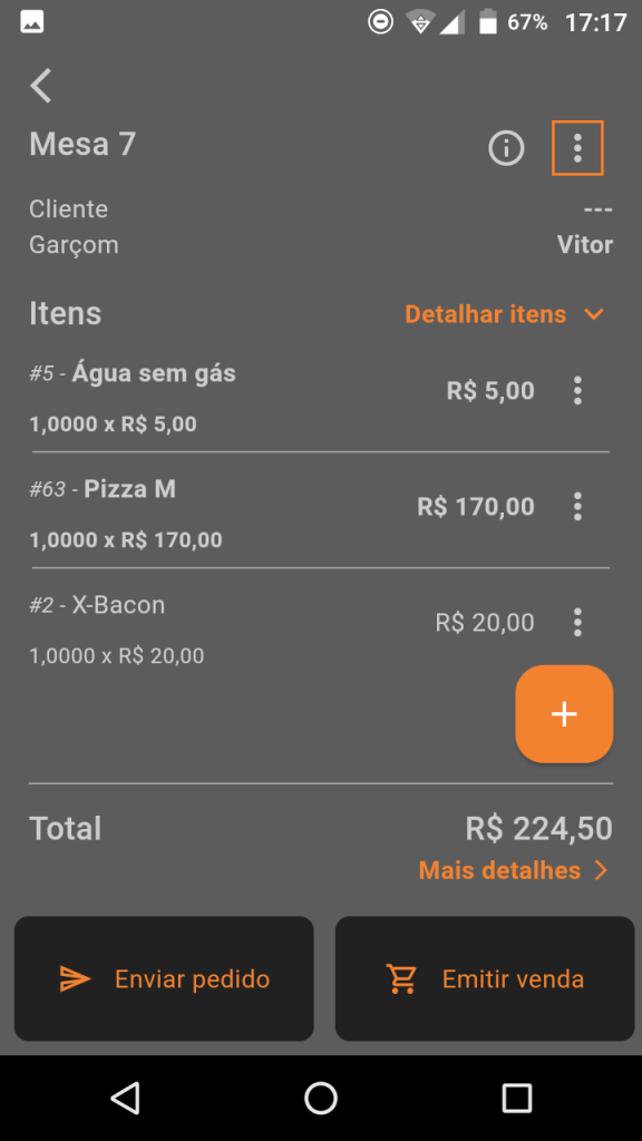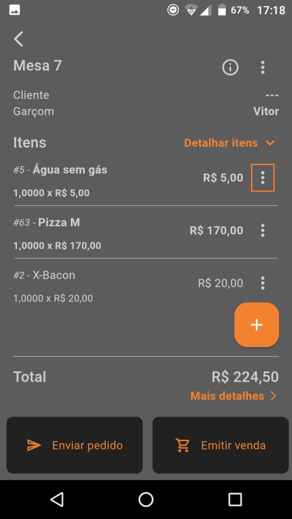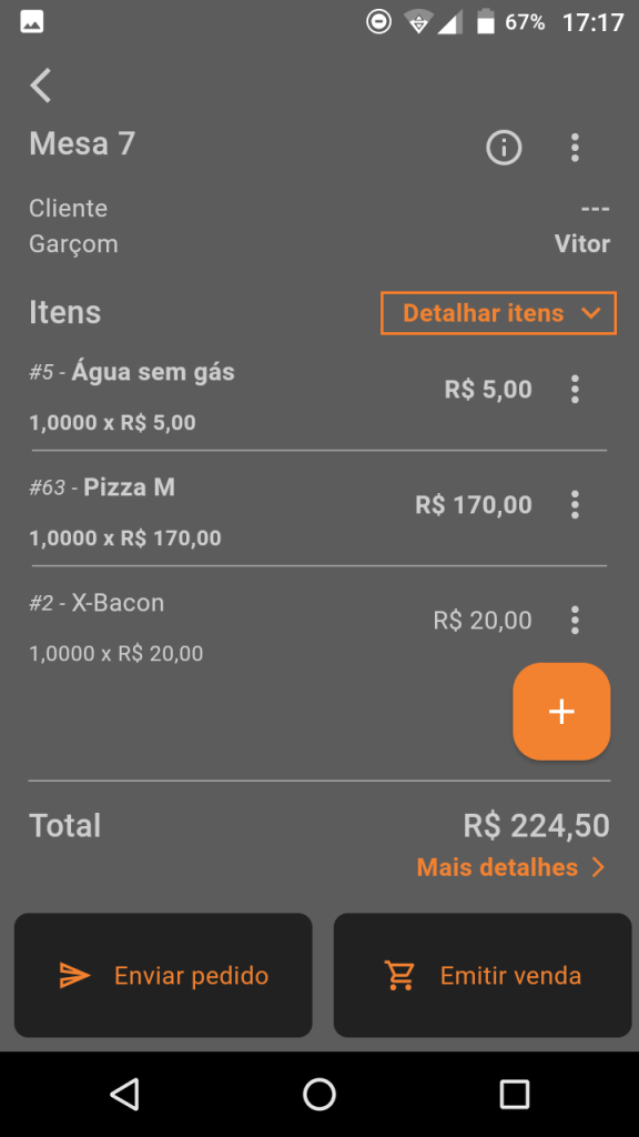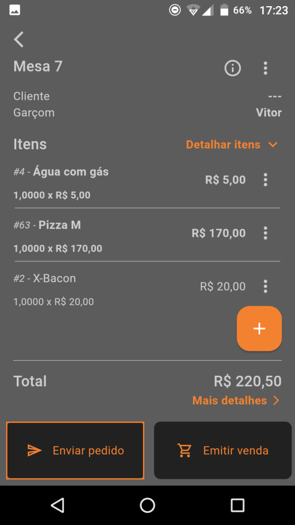 • Compartilhar pedidos via WhatsApp, e-mail entre outros.