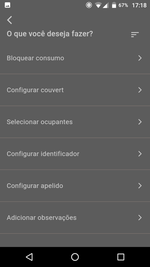 • Configurar consumação ou bloquear o consumo de uma mesa;