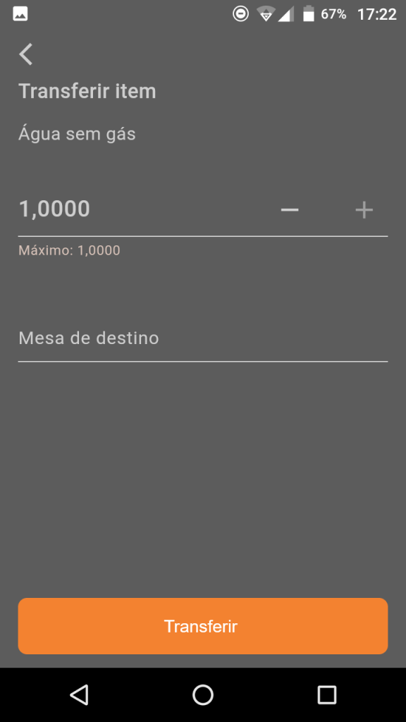 • Transferir item: possibilita transferir o item selecionado para outra mesa, informando o número da mesa de destino e a quantidade que será transferida.