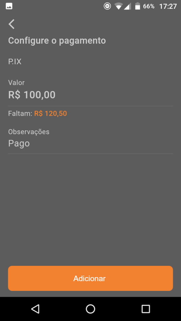 Informe o valor da forma de pagamento e adicione ao lançamento.