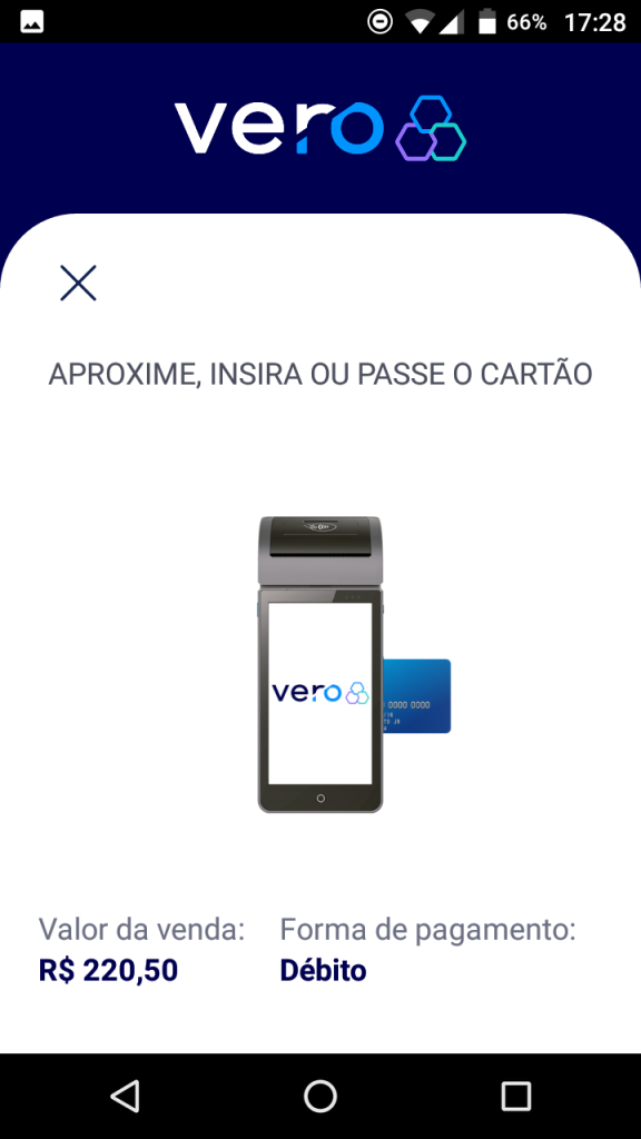 Ao clicar no botão “Emitir venda” o sistema realiza a finalização do documento de forma automatizada. Para isso, informe os pagamentos e prossiga conforme a solicitação da maquininha.