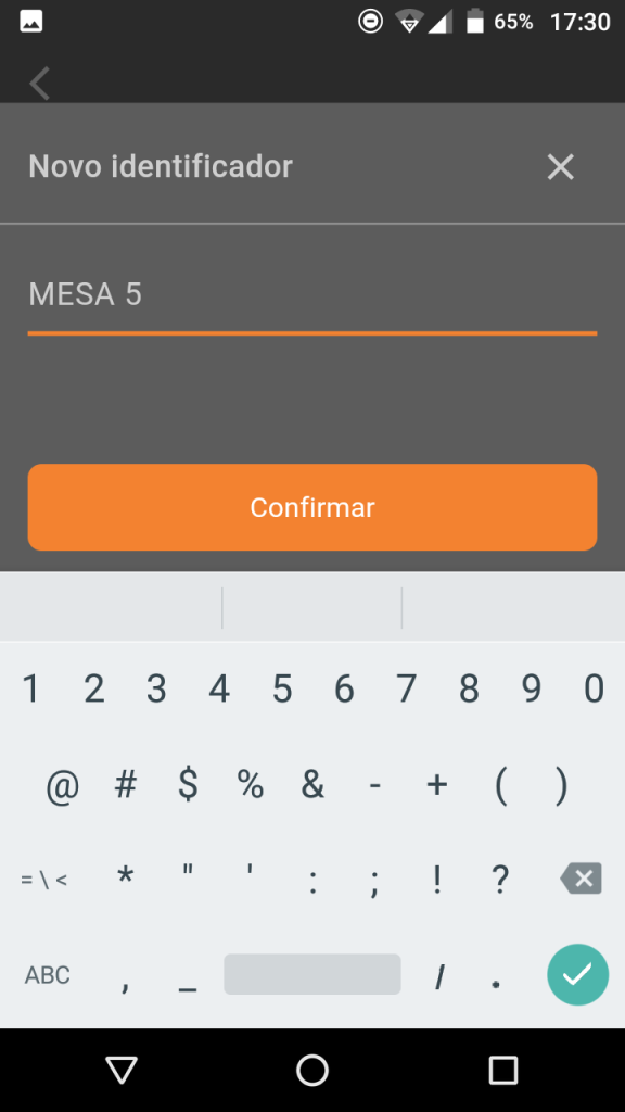Informe o nome do identificador, exemplificado aqui como mesa 5 e clique em “salvar”.