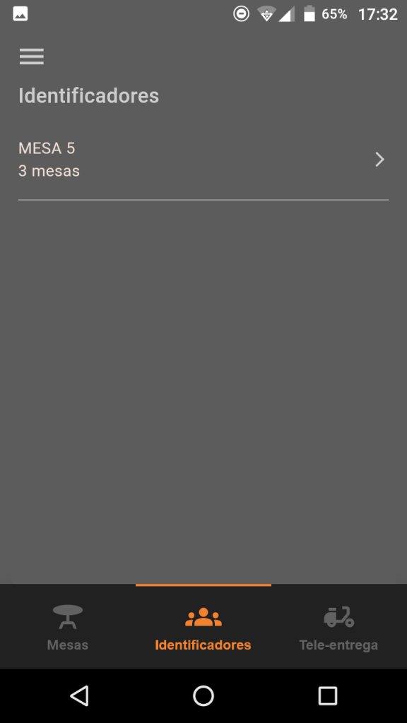 Acessando o menu identificadores, será possível ver o identificador criado. Clicando no identificador, serão apresentadas todas as comandas vinculadas a ele.