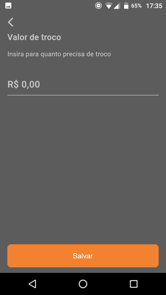 Solicite ao cliente quanto ele precisa de troco e informe na tela.