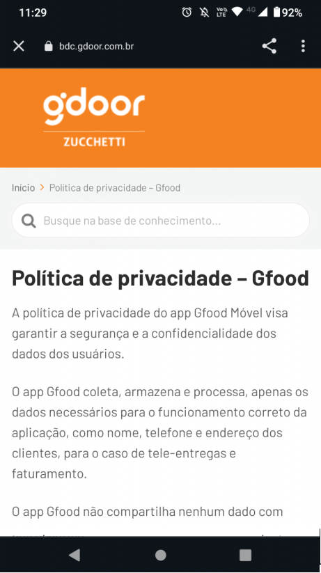 A comunicação do aplicativo Gfood móvel nas maquininhas com o Ghub ocorre por meio de uma conexão Wi-Fi ou 4G.
