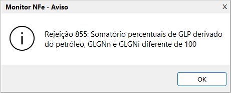 Quando emitir uma NF-e/NFC-e com produto de código ANP igual a 210203001 e a somatória dos campo pGLP, pGNn e pGNi for diferente de 100%.