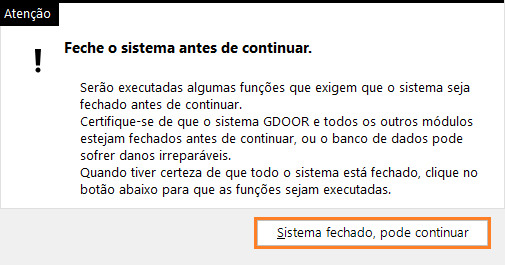 Confirme a instalação clicando no botão “Sistema fechado, pode continuar”.