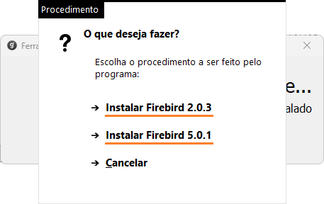Selecione a versão do Firebird que deve instalar e aguarde o processo de instalação.