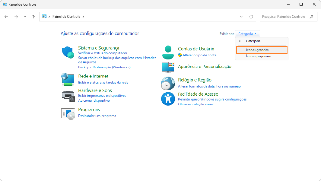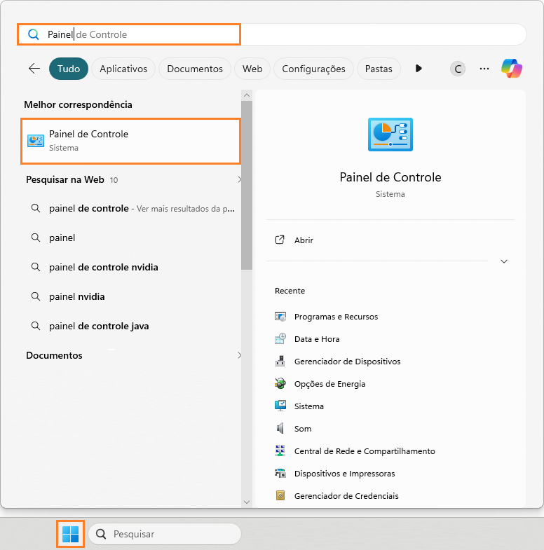 Para conferir a instalação, clique no menu “Iniciar” do Windows, pesquise por “Painel de controle” e clique para abrir.